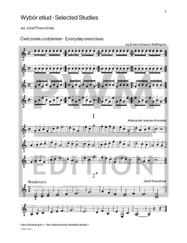 ''Wybór etiud'' jest uzupełnieniem szkoły gry na gitarę. Układ ćwiczeń jest progresywny - od ćwiczeń najłatwiejszych, stosowanych w początkach nauki, przechodzi się do coraz trudniejszych. W doborze ćwiczeń zwraca się uwagę na równomierny i prawidłowy rozwój techniki obu rąk.