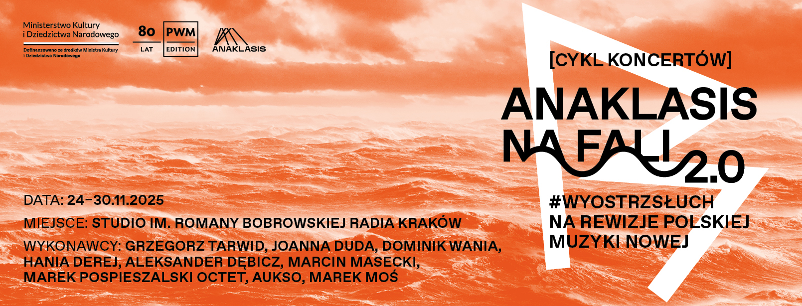 7 dni, 7 koncertów w Studiu im. Romany Bobrowskiej Radia Kraków, w tym 6 w formule recitali fortepianowych. 7 nowych programów zbudowanych wokół twórczości wybitnych kompozytorek i kompozytorów XX oraz XXI wieku. Polskie Wydawnictwo Muzyczne, wytwórnia ANAKLASIS i Radio Kraków zapraszają na drugą odsłonę cyklu koncertów ANAKLASIS NA FALI 2.0, która odbędzie się 24–30 listopada 2025 r.
