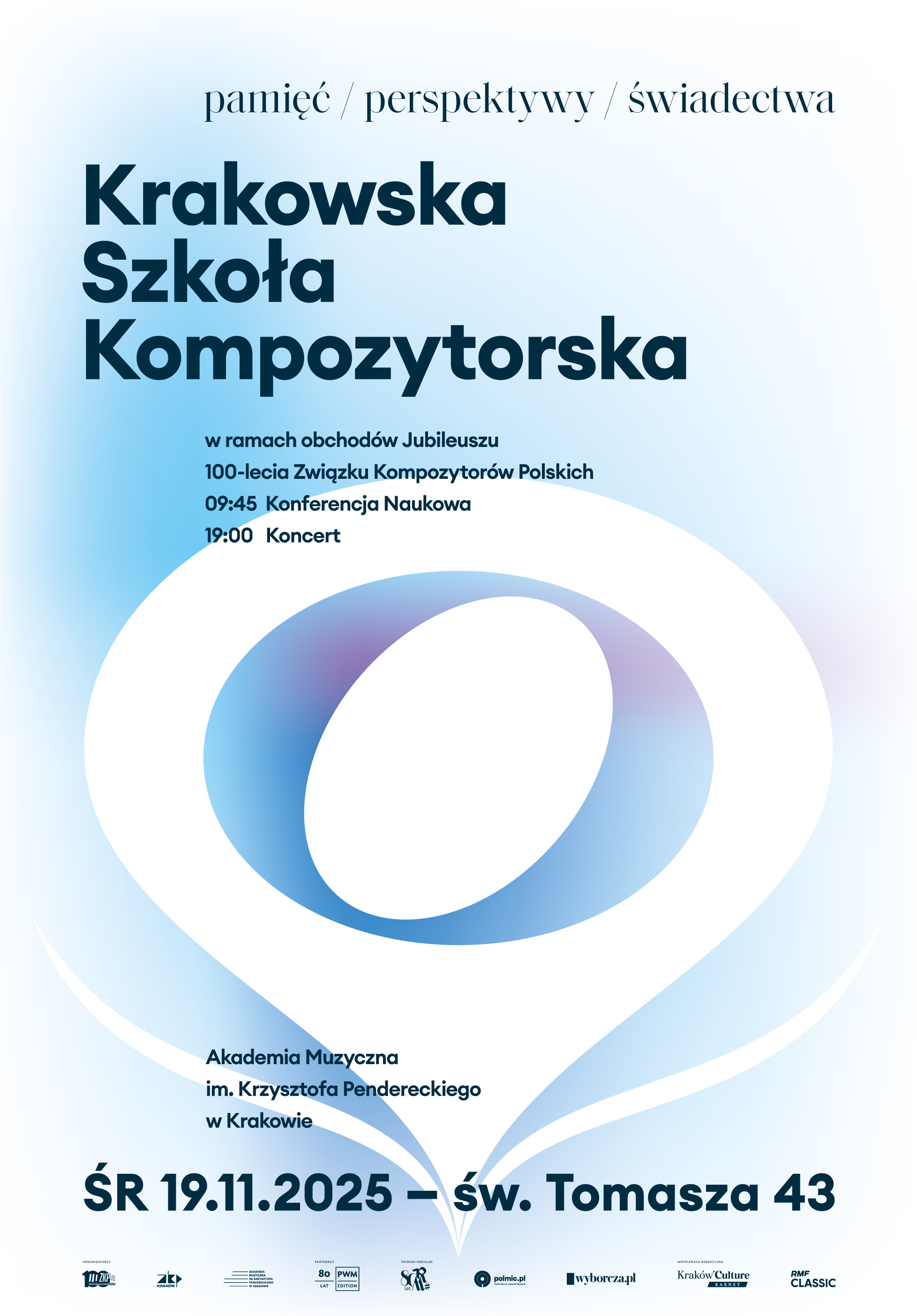 Związek Kompozytorów Polskich Odział w Krakowie oraz Akademia Muzyczna im. Krzysztofa Pendereckiego w Krakowie zapraszają na Konferencję Naukową i Koncert w ramach obchodów Jubileuszu 100-lecia Związku Kompozytorów Polskich, pt. "KRAKOWSKA SZKOŁA KOMPOZYTORSKA. Pamięć – perspektywy – świadectwa".