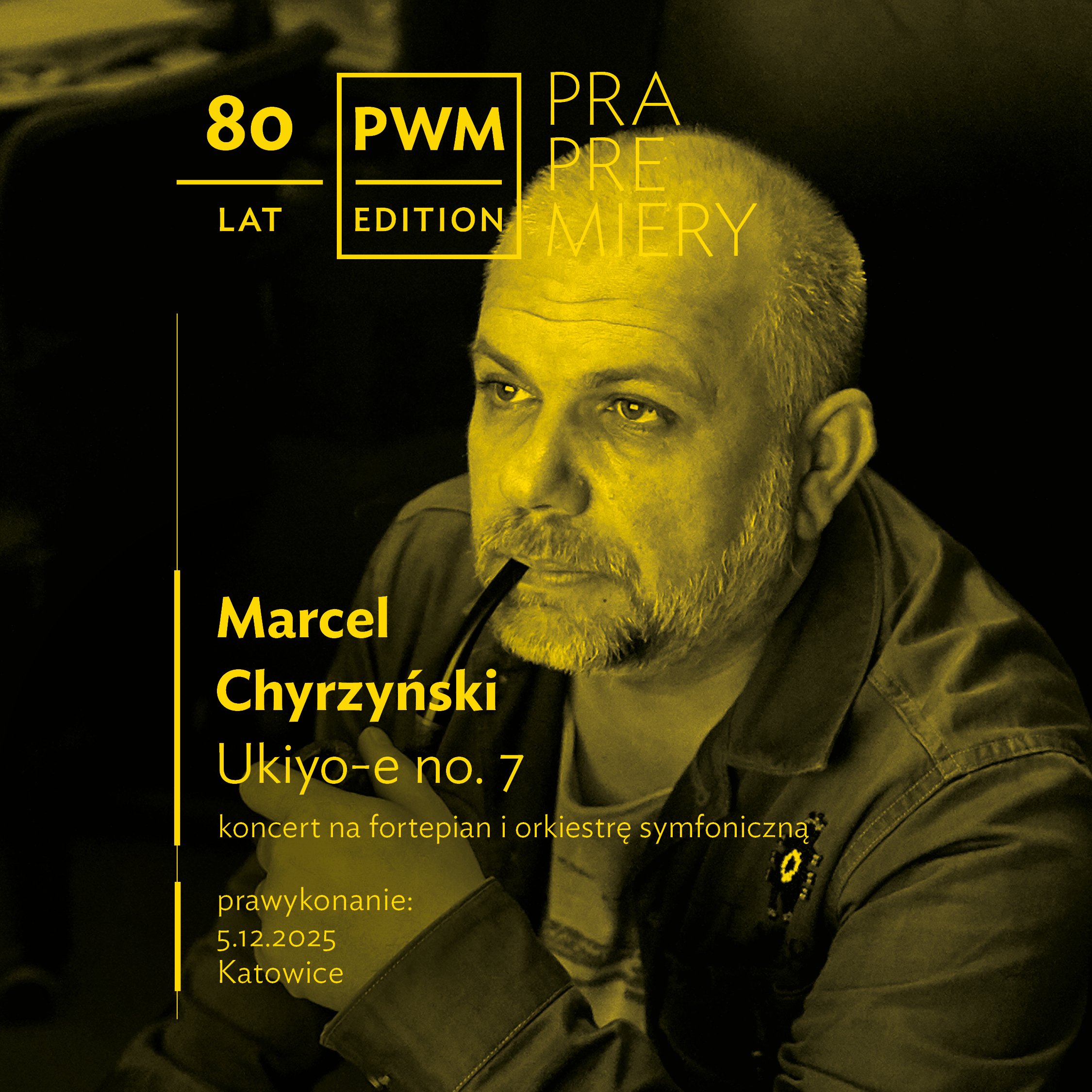 Marcel Chyrzyński, ceniony za umiejętne łączenie emocjonalnej głębi z nowoczesnym językiem dźwiękowym, po raz kolejny zrealizował zamówienie kompozytorskie dla Filharmoników Śląskich. W ten sposób powstał siódmy, przeznaczony tym razem na fortepian i orkiestrę, utwór z jego autorskiego cyklu Ukio-e, w którym tytułem i formą nawiązuje on do historycznego drzeworytnictwa japońskiego ukazującego „obrazy przemijającego świata”.
