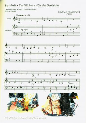 Kolorowo ilustrowany zbiór zawiera krótkie utwory na skrzypce i fortepian, przeznaczone dla uczniów pierwszych klas skrzypiec. Zamiarem autora było nie tylko spełnienie celów dydaktycznych (zmiana strun, początki zmiany pozycji, zmiany dynamiki, efekty wyrazowe), ale i zapewnienie młodym muzykom czerpania przyjemności z gry. Partia fortepianu jest na tyle prosta, aby mógł wykonać ją drugi uczeń.