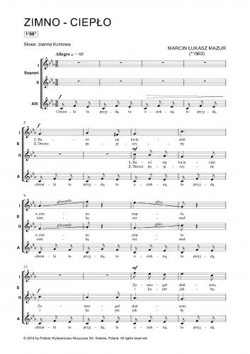 Partytura studyjna nie upoważnia do kopiowania i sporządzania głosów wykonawczych. W celu legalnego nabycia większej ilości partytur chóralnych, po preferencyjnych cenach dla zespołu, prosimy wysłać e-mail pod adres: handel@pwm.com.pl lub zajrzeć tutaj
