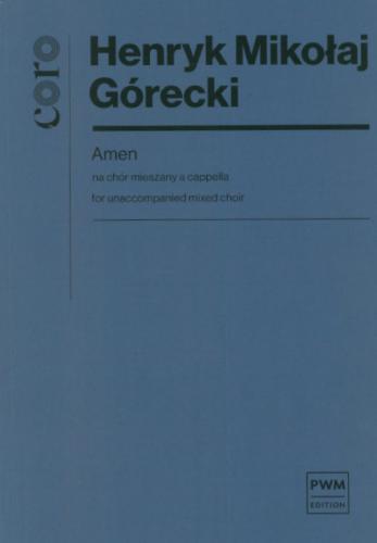 Amen jest jednym z trzech pierwszych w twórczości Góreckiego, powstałych w latach 1972-75, utworów na chór a cappella. Dzieło to jest wyrazem hołdu kompozytora dla tradycji polskich pieśni kościelnych, które były mu niezwykle bliskie. Charakter skupionej medytacji charakterystyczny dla tej kompozycji, został w nim zaakcentowany z jednej strony przez ograniczenie warstwy tekstowej dzieła do jednego, tytułowego słowa amen, które jest ubierane przez kompozytora w coraz to inną szatę harmoniczno-brzmieniową, osiągającą swą kulminację w A-dur. Z drugiej natomiast w długo wytrzymywanych, wolno postępujących wartościach niczym miarowy, spokojny oddech.