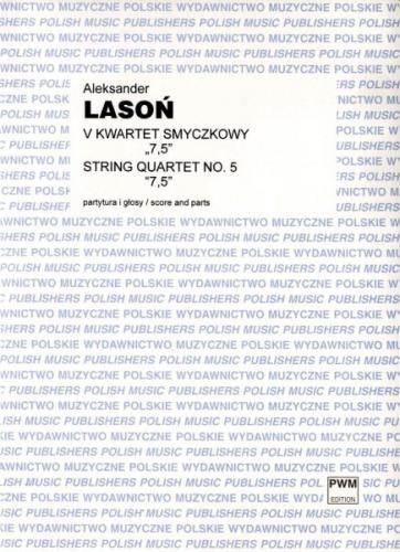 Muzyka V Kwartetu smyczkowego "7,5" Aleksandra Lasonia łączy intensywność uczuć z doskonałością nowego rozumienia formy kwartetu, wyraża się w niej wola życia, radość i odpowiedzialność. Muzyka ta odmalowuje i uzupełnia człowiecze istnienie w brakujący element. Zmienia kanał przekazu, śpiewa siłę bez sprzeczności, śpiewa nowe czasy w harmonii i wolności. Odmalowuje człowiecze uczucia w sposób nadludzki. Jest w tej muzyce tajemnica świata, ulatująca z każdym wybrzmieniem nuty. Przechowuje i zapisuje czas obecny, czas poprzedni i przyszły. Wznieca wewnętrzne światło i prostotę, odrzuca destrukcyjne rozedrganie ciała, odrzuca teoretyczne rozważania o istocie, nie godzi się na łamanie piękna i niezłamywalnej natury człowieczej. Eufonia. Symfonia smyczków. Przyodziana w duchową przyjemność słuchania i ulotną boskość trwania dźwięków. Naturą tej muzyki jest bycie, ale nieokreślone. Apoteoza wolności i przeznaczenia. Justyna Kowalska-Lasoń