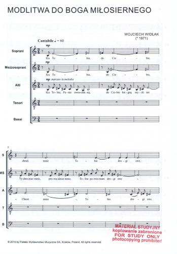 Partytura studyjna nie upoważnia do kopiowania i sporządzania głosów wykonawczych. W celu legalnego nabycia większej ilości partytur chóralnych, po preferencyjnych cenach dla zespołu, prosimy wysłać e-mail pod adres: handel@pwm.com.pl lub zajrzeć tutaj
