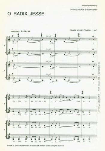 Partytura studyjna nie upoważnia do kopiowania i sporządzania głosów wykonawczych. W celu legalnego nabycia większej ilości partytur chóralnych, po preferencyjnych cenach dla zespołu, prosimy wysłać e-mail pod adres: handel@pwm.com.pl 'lub zajrzec tutaj